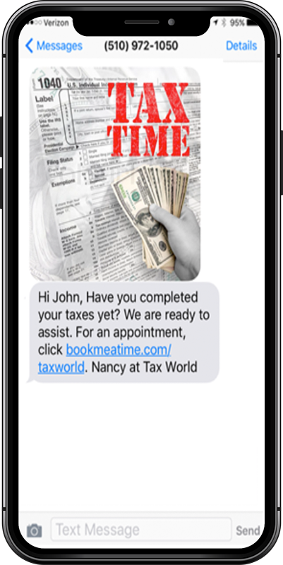 Textellent offers a unique Personalized Texting service designed with Tax Professionals in mind(US Patent 9,756,487). Using the principles of Personalized Texting mentioned above, it also combines the best practices for marketing & communication.